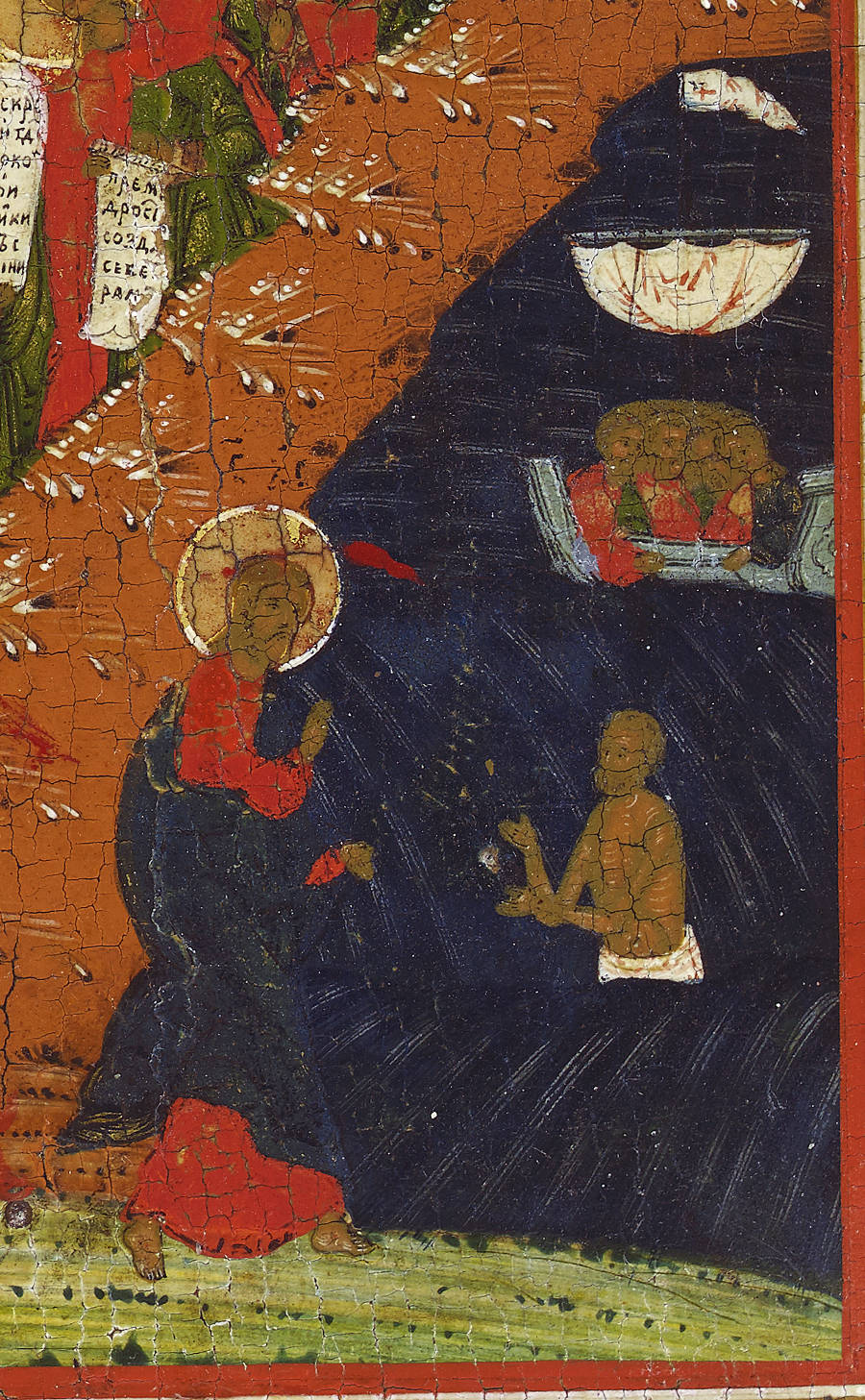 Inscriptions: Old Slavonic inscriptions identify the various scenes depicted.